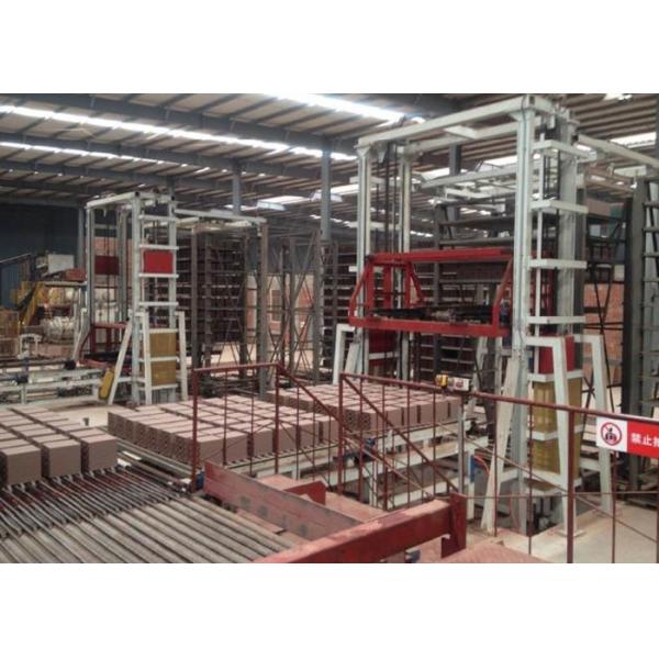 Drying and firing will adopt two times stacking & firing process with tunnel dryer technology. Drying chamber adopts tunnel dryer (83.65x22.625m). The heat of the dryer comes from high temperature heat of fired-products and residual heat from Tunnel Kiln, through change the system to adjust the feeding air temperature and volume, so that to ensure the drying quality of green bricks.